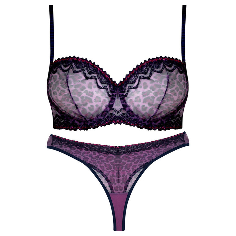 ست شورت و سوتین زنانه برتا مدل فنردار پلنگی کد 5100-2420-BP رنگ بنفش