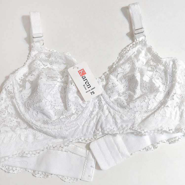 سوتین زنانه کارنا رز مدل فنردار کش پهن گیپوری کد 4934-332 رنگ سفید