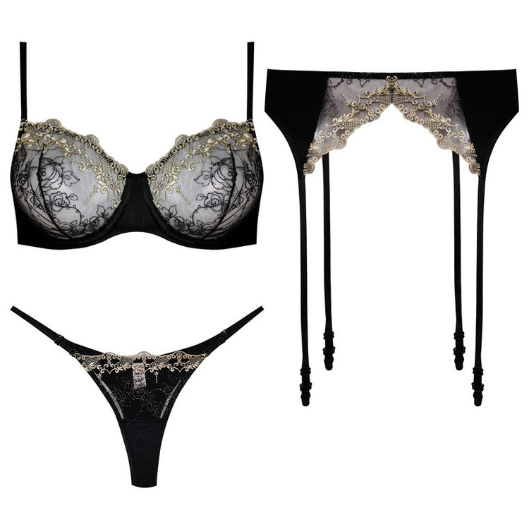 ست شورت و سوتین زنانه برتا مدل فنردار کد 5106-4010-B رنگ مشکی به همراه نگهدارنده جوراب