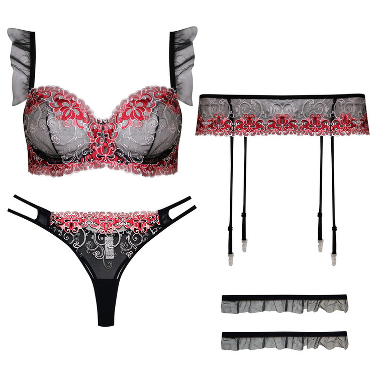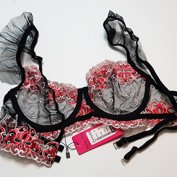 ست شورت و سوتین زنانه برتا مدل فنردار کد 5107-4030-RB رنگ مشکی به همراه نگهدارنده جوراب
