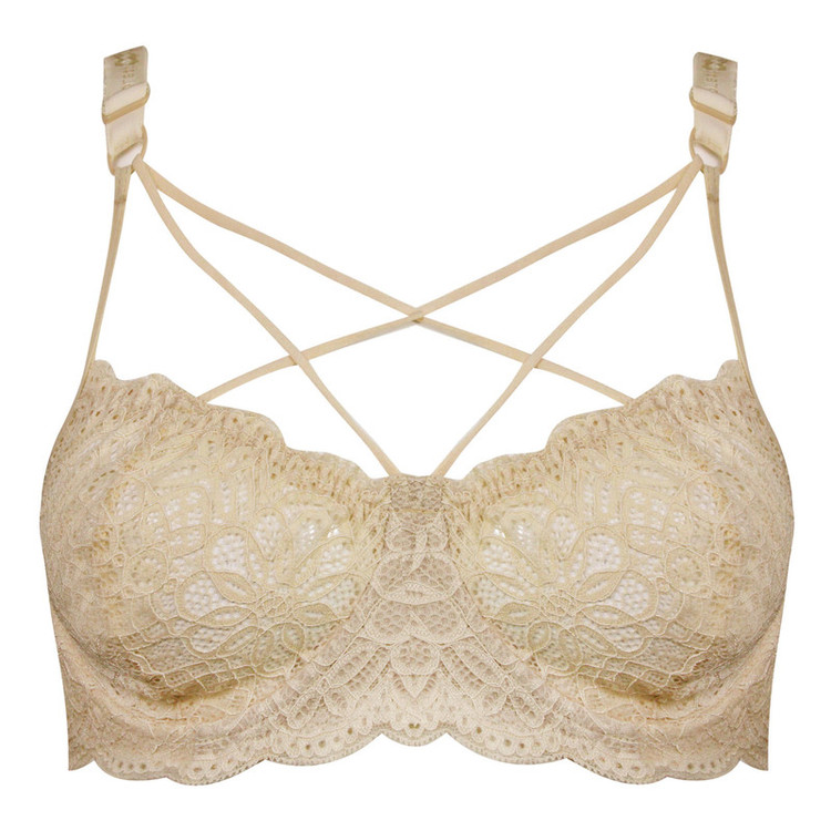- سوتین فنردار کارنا رز -دارای بندهای قابل تنظیم -بدون پد -قزن 2 ردیفه -قسمت های توری و گیپوری بدن نما