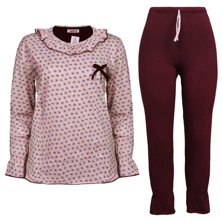 ست بلوز آستین بلند و شلوار زنانه کوزا مدل 9155 رنگ گلبهی