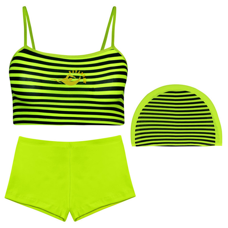 ست 3 تکه مایو دخترانه ماییلدا مدل 4409 رنگ زرد فسفری