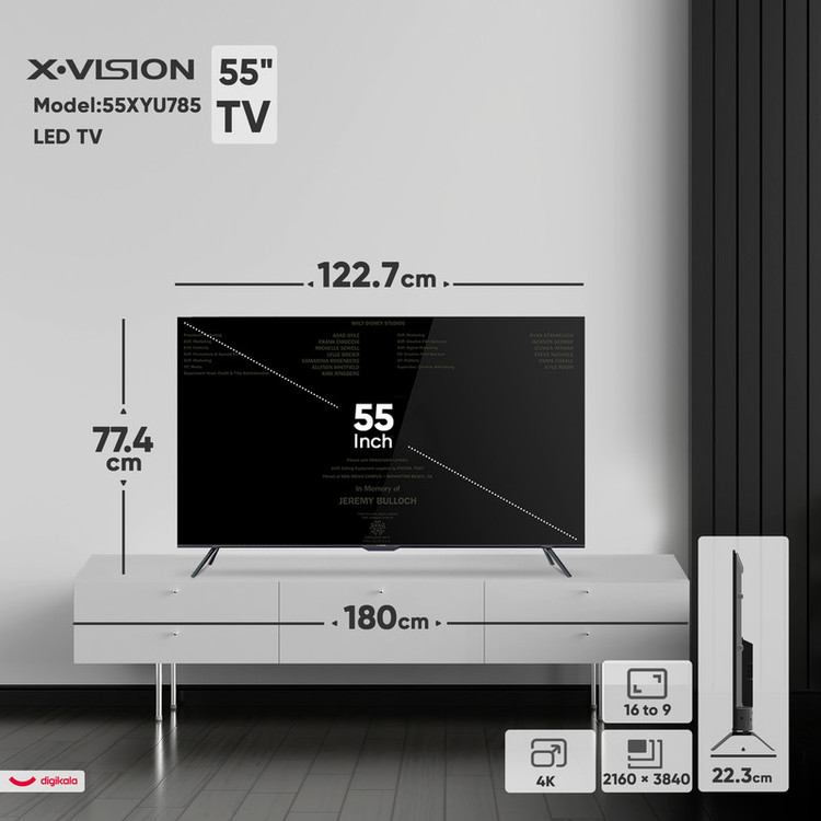ابعاد تلویزیون بدون پایه : 706x75x1227 میلیمتر