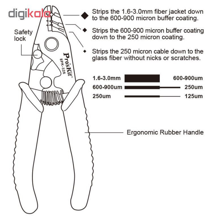 سیم لخت کن استریپری فیبر نور دارای قفل برای بسته ماندن انبر دارای فنر جهت بار شدن خودکار انبر هنگام کار