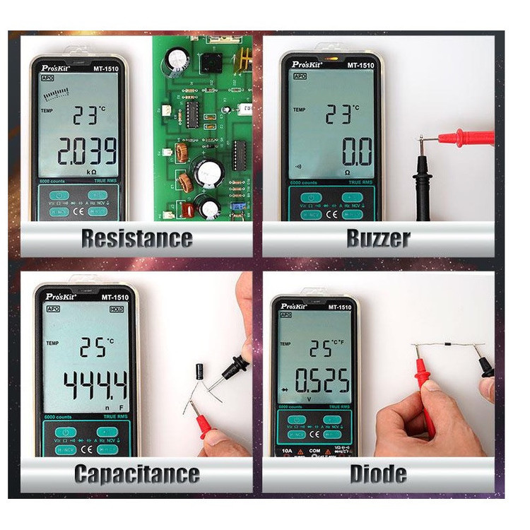 RMS صحیح , تداوم قابل شنیدن , تست خازن , تست دیود , گسترهیابی اتوماتیک