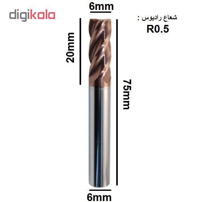 HRC55 4 پر کارباید برنزی رنگ سایز : D6R0.5*20*D6*75 میلی متر