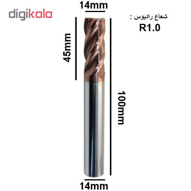 HRC55 4 پر کارباید برنزی رنگ سایز : D14R1*45*D14*100 میلی متر
