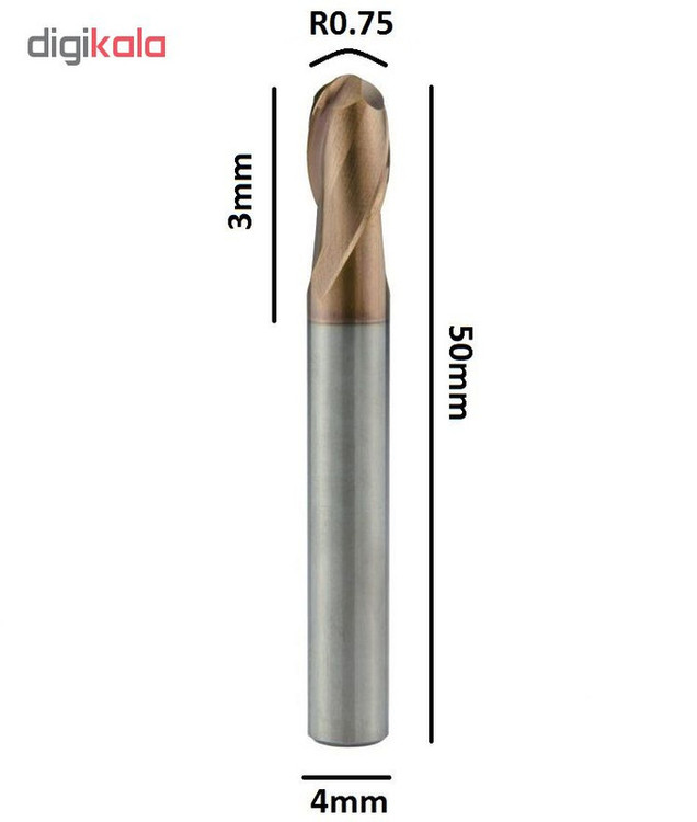 HRC55 2 پر کارباید برنزی رنگ سایز : R0.75*3*D4*50 میلی متر