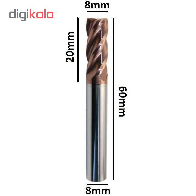 HRC55 4 پر کارباید برنزی رنگ سایز : D8*20*D8*60 میلی متر