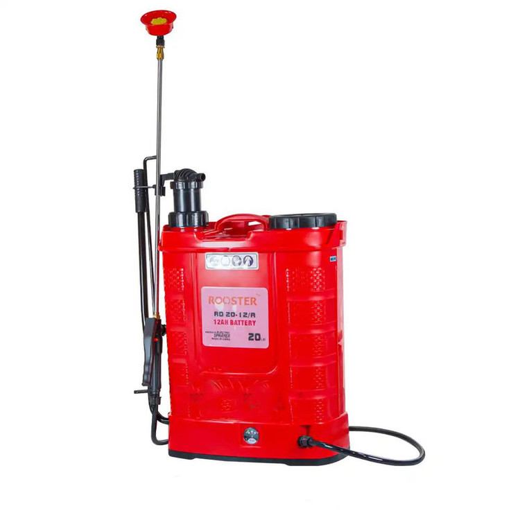 سمپاش 20 لیتری روستر دارای صفحه نمایشگر و نوع دوکاره دستی و شارژی و توان باتری 12 میلی امپر بر ساعت میباشد.