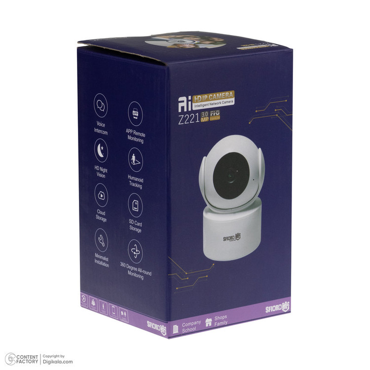 اقلام همراه : پایه دیواری، پیچ و رول پلاک ، آداپتور مخصوص ، کابل اتصال دوربین به آداپتور ، دفترچه راهنمای فارسی