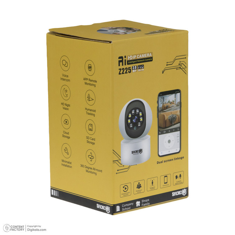 اقلام همراه : پایه دیواری، پیچ و رول پلاک ، آداپتور مخصوص ، کابل اتصال دوربین به آداپتور ، دفترچه راهنمای فارسی ، 2 عدد کارت حافظه 64 گیگابایتی اسفیورد