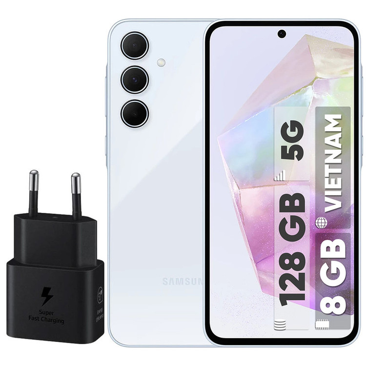 بدون هیچ تعریفی باید بگوییم که گوشیهای هوشمند میانرده سری A سامسونگ توانستهاند با بهره بردن از مشخصات فنی قدرتمند، عملکرد بسیار خوبی را از خود بهنمایش بگذارند. سامسونگ Galaxy A35 یکی از این میانردههای باکیفیت و دوستداشتنی است که به نسبت قیمت در نظر گرفته شده، از مشخصات فنی مناسب و کاملا قابل قبولی بهره برده است. در نمای روبهرویی این گوشی به صفحهنمایش بسیار باکیفیت 6.6 اینچ و رزولوشن 1080×2400 پیکسل از نوع سوپرامولد مجهز شده که توانایی ارائه نرخ بروزرسانی 120 هرتز را هم دارد. با توجه به مشخصات در نظر گرفته شده شما شاهد وضوح تصویر بسیار خوب و باکیفیت و البته عملکرد بسیار روان و بدون لگ در اجرای بازیهای سنگین و نرمافزارهای کاربردی روزمره خواهید بود. در قسمت پشتی این گوشی هم یک سنسور دوربین اصلی با رزولوشن 50 مگاپیکسل در کنار سنسور 8 مگاپیکسل فوقعریض و سنسور 2 مگاپیکسل ماکرو در نظر گرفته شده که سنسور دوربین اصلی این گوشی بهخوبی توقعات شما را در حد و اندازه یک گوشی میانرده برای عکاسی در نور روز و نور شب برآورده میکند. در بخش فیلمبرداری هم خیالتان راحت باشد، چون دوربین اصلی توانایی ضبط ویدیو با نهایت کیفیت 4K را دارد. برای دوربین سلفی هم سنسور با رزولوشن 13 مگاپیکسل در نظر گرفته شده که باید بدانید که توانایی فیلمبرداری 4K را هم دارد. باتری 5000 میلیآمپرساعتی در نظر گرفته شده هم به ازای هر بار شارژ صد درصدی در حالت استفاده معمولی، زمان آماده بهکار دو روز را در اختیارتان قرار میدهد. در مجموع میتوانیم بگوییم که اگر به دنبال خرید گوشی میانردهای هستید که از مشخصات بسیار خوبی بهره برده باشد و البته طراحی جذاب آن حس و حال استفاده با یک پرچمدار را به شما بدهد، سامسونگ Galaxy A35 میتواند گزینه مناسبی برای شما باشد. همانطور که میدانید، درون جعبه این گوشی خبری از آداپتور شارژر نیست، اما این گوشی بههمراه شارژر 25 وات سامسونگ به فروش میرسد که رنگ شارژر ارسالی ممکن است سفید یا مشکی باشد.