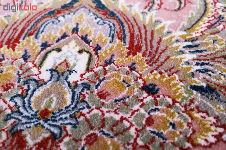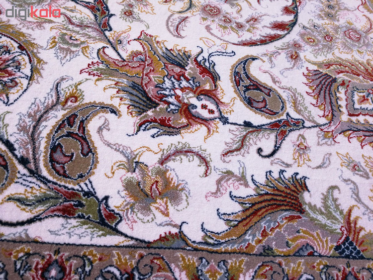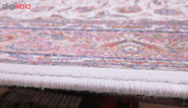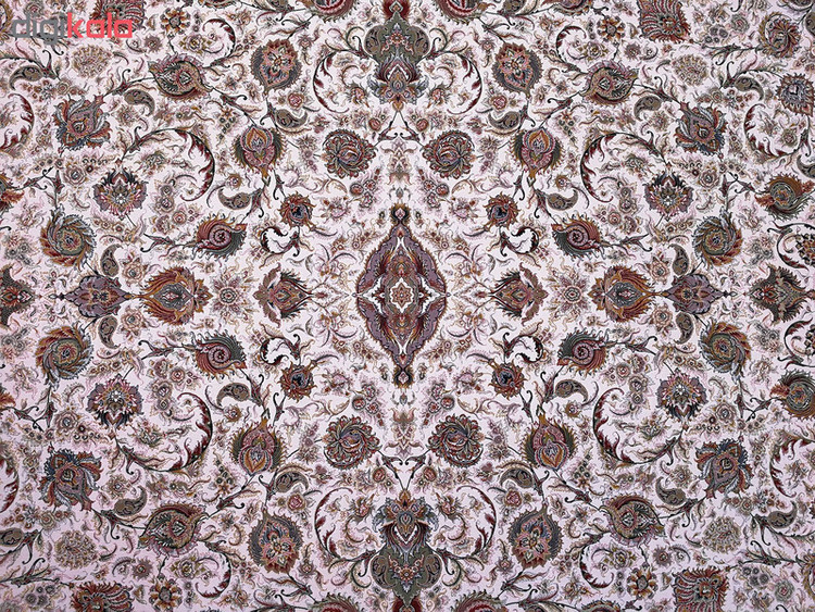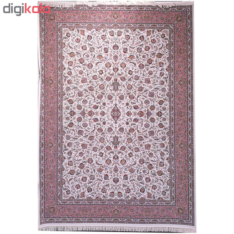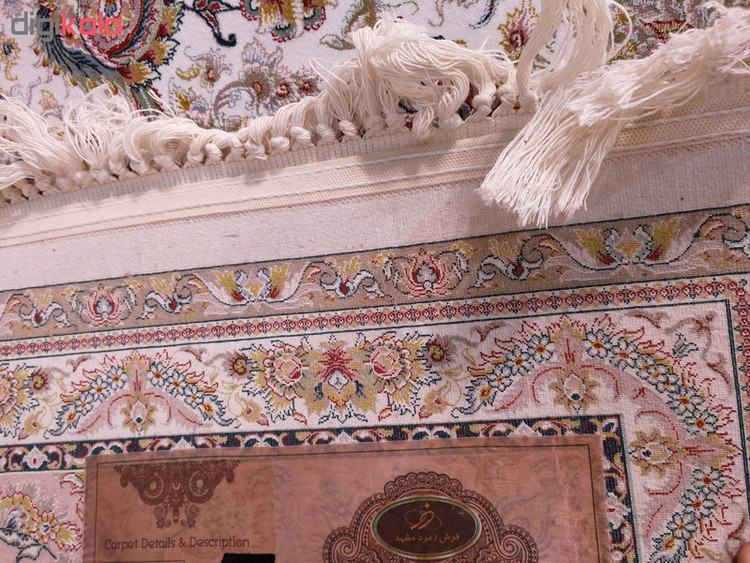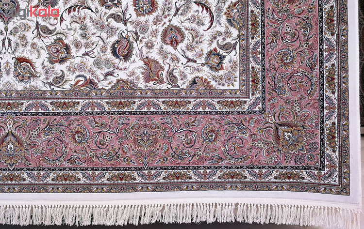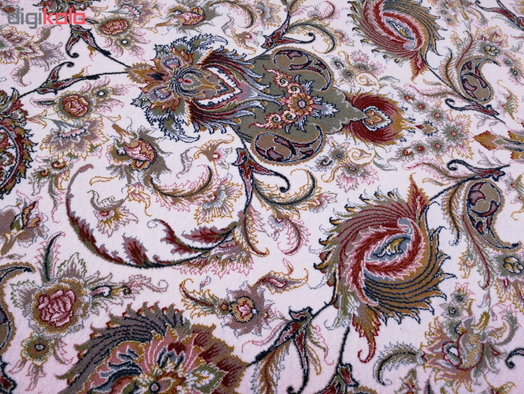 1500 شانه تراکم 4500 همانند فرش 90 رج دستبافت طرح افشان ریز گل ایرانی با رنگبندی تبریز الیاف تماما درآلون آلمان و رنگ سیبا گاگی سوییس تحت لیسانس درآلون آلمان و دارای نشان استاندارد و کیفیت ملی