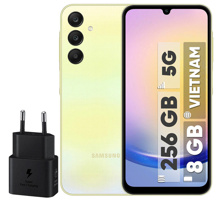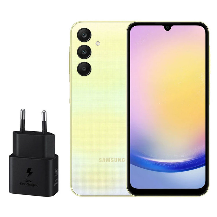 بدون هیچ تعریف اضافی باید بگوییم که تنوع بالای گوشیهای هوشمند میانرده شرکت سامسونگ، پاسخگوی سلایق مختلف با توقعات مختلف است که سامسونگ Galaxy A25 یکی از این میانردهها است که به نسبت قیمت در نظر گرفته شده، از مشخصات فنی بسیار مناسب و کاملا قابل قبولی بهره برده است. طراحی در نظر گرفته شده برای Galaxy A25، طراحی آشنایی است که پیش از این هم چنین طراحی را در گوشیهای هوشمند سامسونگ شاهد بودیم. در نمای روبهرویی این گوشی به صفحهنمایش 6.5 اینچ با رزولوشن 1080×2340 پیکسل از نوع سوپرامولد مجهز شده است. صفحهنمایش با توانایی نمایش 396 پیکسل در هر اینچ، نرخ بروزرسانی 120 هرتز و حداکثر روشنایی 1000 نیت (nits). با توجه به مشخصات در نظر گرفته شده، با یکی از بهترین صفحاتنمایش در بین گوشیهای میانرده روبهرو هستید. در قسمت پشتی هم یک سنسور دوربین اصلی با رزولوشن 50 مگاپیکسل در کنار سنسور 8 مگاپیکسل فوقعریض و سنسور 2 مگاپیکسل ماکرو در نظر گرفته شده. دوربین اصلی این گوشی بهخوبی توقعات شما را در حد و اندازه یک گوشی میانرده برای عکاسی نور روز و نور شب برآورده میکند. فیلمبرداری 4K هم از دیگر مشخصات این گوشی است. دوربین سلفی 13 مگاپیکسل این گوشی هم عملکرد کاملا قابل قبولی دارد. در بخش مشخصات سختافزاری هم این گوشی به پردازنده اگزینوس 1280 مجهز شده است. پردازندهای که سبب شده تا این گوشی در اجرای بازیهای محبوب و نرمافزارهای کاربردی، عملکرد روان و بسیار خوبی داشته باشد. باتری با میزان ظرفیت 5000 میلیآمپرساعت هم به ازای هر بار شارژ صد درصدی، زمان آماده بهکار دو روز را در حالت استفاده معمولی در اختیارتان قرار میدهد. در مجموع باید بگوییم که اگر به دنبال خرید گوشی میانردهای هستید که به صفحهنمایش بسیار باکیفیت، دوربین اصلی قدرتمند، پردازنده و باتری مناسب مجهز شده باشد، سامسونگ Galaxy A25 میتواند گزینه بسیار مناسبی برای شما باشد. رنگ شارژر ارسالی ممکن است سفید یا مشکی باشد.