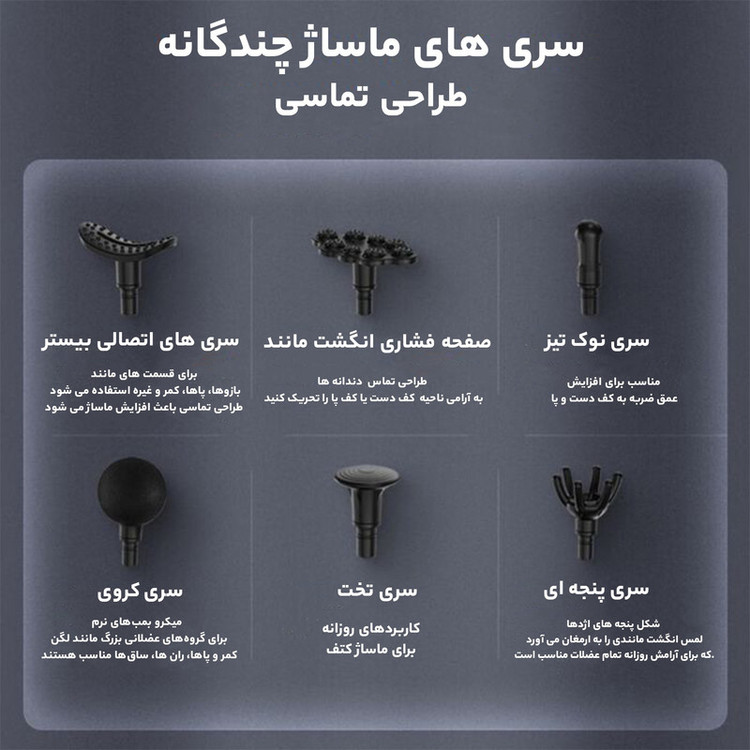 2 حالت و 7 سطح سرعت | 6 سری ماساژ مختلف برای تمام نقاط بدن | باتری 1500mAh و 120 دقیقه شارژ دهی | دامنه جابه جایی سری 8 میلیمتر
