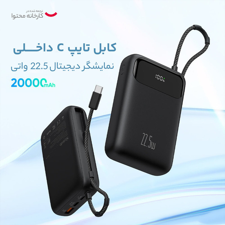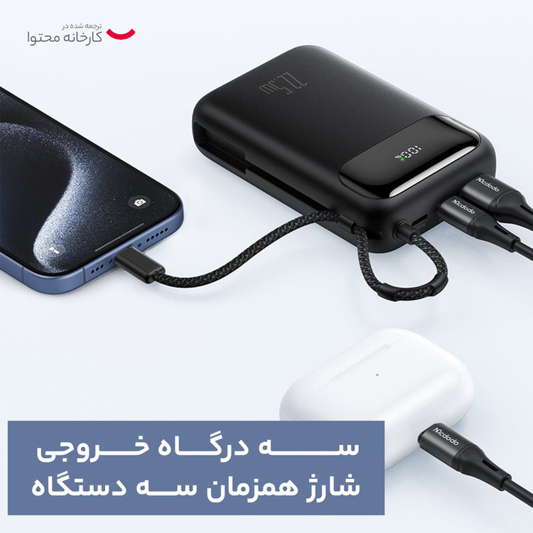 پاور بانک Mcdodo ch-372 دارای کابل USB-C داخلی است که نیاز به حمل کابل های اضافی را از بین می برد. همچنین دارای یک صفحه نمایش دیجیتال است که به شما امکان می دهد به راحتی قدرت باقی مانده پاور بانک را کنترل کنید.