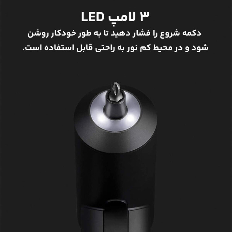 مدت زمان شارژ : 120 تا 180 دقیقه دارای چراغ در جلو برای روشنایی گشتاور 5 نیوتون متر پورت شارژ دستگاه تایپ سی میباشد