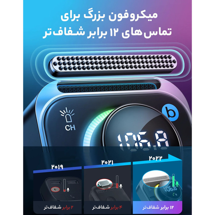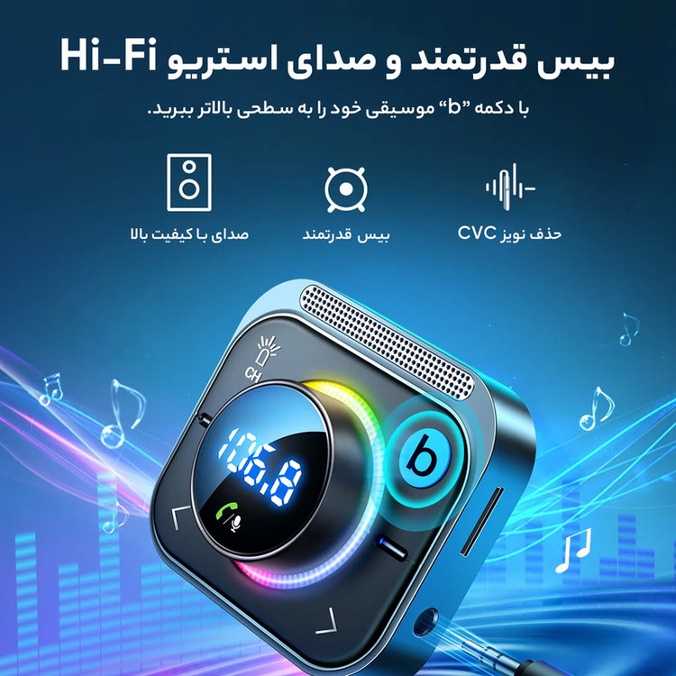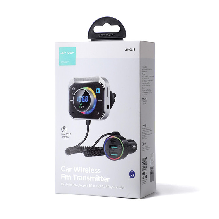 موزیک پلیر فندکی ماشین Joyroom JR-CL18 Bluetooth FM Car Charger 30W شارژر فندکی به یکی از مهم ترین ابزار داخل اتومبیل تبدیل شده است زیرا گوشی شما را در سفر های طولانی یا مسیرهای داخل شهر از خاموشی نجات می دهد. شارژر فندکی جویروم Joyroom JR-CL18 محصولی از کمپانی Joyroom بوده که به شما این امکان را می دهد تا بتوانید به راحتی دو گوشی موبایل خود را شارژ کنید و همچنین با بلوتوث به دستگاه متصل شده و موسیقی گوش دهید. مشخصات شارژر فندکی Joyroom JR-CL18 شارژر فندکی شارژر فندکی Joyroom JR-CL18 داری بلوتوث داخلی است.از این شارژ فندکی علاوه بر شارژ گوشی خود می توانید به عنوان یک MP3 Player برای موسیقی خود استفاده کنید. این شارژر فندکی بلوتوث دار جویروم JR-CL18 با اتصال به موبایل موسیقی را تبدیل به امواج FM تبدیل می کند و تنظیم موج یکسان می توانید گوشی را شارژ یا به موسیقی و رادیو خود گوش کنید. همچنین این شارژر فندکی ماشین Joyroom JR-CL18 دارای جک 3.5 میلی متر است که با اتصال کابل AUX خود به دستگاه می توانید موزیک را با کیفیت بسیار فوق العادی گوش دهید. همچنین توان خروجی این شارژر فندکی 30 وات است که از آن برای شارژ کردن گوشی موبایل خود می توانید استفاده نمایید. پخش کننده اف ام خودرو جویروم JR-CL18 دارای یک دکمه B است که از آن برای این که مکالمه بهتری با گیرنده خود داشته اید می توانید استفاده کنید. نسخه بلوتوث 5.3 شارژر فندکی Joyroom JR-CL18 دارای بلوتوث نسخه 5.3 است و می توان تفاوت اصلی آن را با نسخه های قبلی خود در پیشرفتهتر شدن و به روز شدن چیپ بلوتوث آن دانست. با استفاده ازشارژر فندکی و پخش کننده بلوتوث جویروم می توان تا فاصله ده متری (بدون هیچ مانعی از منبع پخش صدا) بدون افت کیفیت صدا را شنید و به موسیقی گوش داد. از دیگر قابلیتهای بلوتوث نسخه 5.3 این است که اتصال سریع و پایدارتری داشته و امکان انتقال دیتا نیز با سرعت بیشتری صورت میگیرد. خروجی شارژر فندکی Joyroom JR-CL18 این شارژر فندکی جویروم Joyroom JR-CL18 Bluetooth Car Charger علاوه بر گوش دادن به موسیقی به صورت همزمان می توان 3 دستگاه را با پورت ها و توان های مختلفی شارژ کند که توان خروجی این شارژر فندکی به شرح زیر خواهد بود