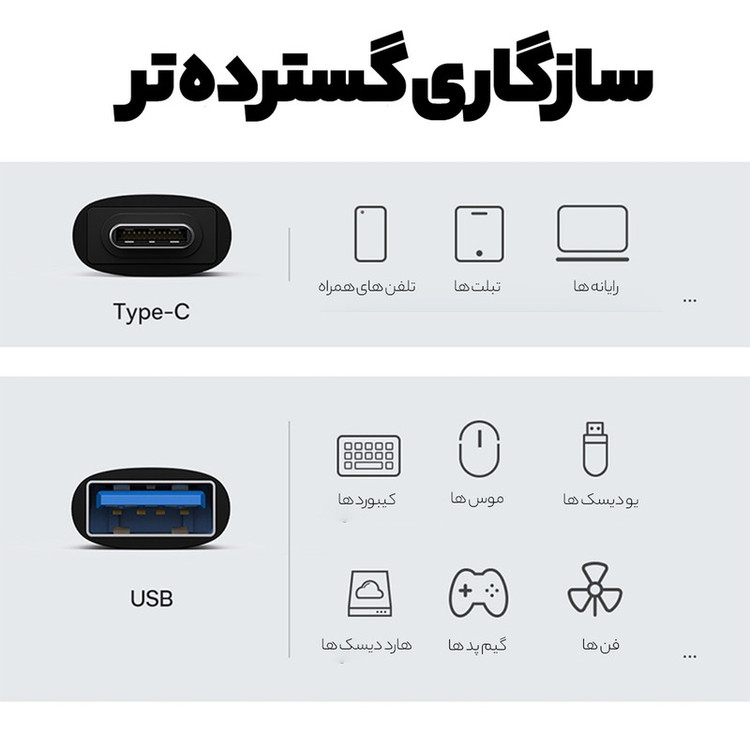 امکان استفاده برای تبدیل پورت یو اس بی به تایپ سی برای شارژ کردن