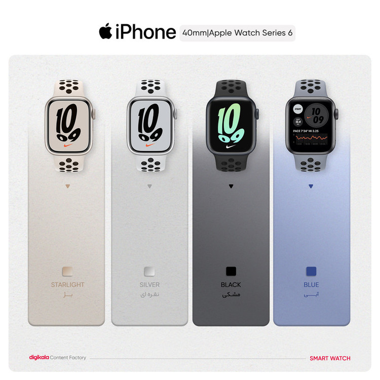 کارکرده - ساعت هوشمند اپل واچ سری 6 مدل 40mm Aluminum Case with Nike Sport silicone Band