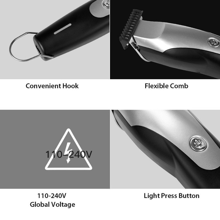 طراحی ارگونومیک ، کیفیت بدنه بالا ، جنس تیغه استیل ضد زنگ ، دارای 3 عدد شانه در سایزهای 1/5 – 1/2 – 1 ، قابلیت تنظیم اندازه تیغه ، تیغه خط زن ، اصلاح سریع و آسان