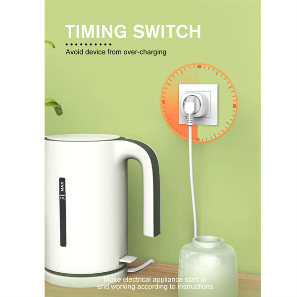 قابلیت اتصال به گوشی همراه | پریز با پشتیبانی از دو شاخه های EU | دارای WiFi با فرکانس 2.4GHz | مقاوم در برابر افزایش دما تا 850 درجه سانتی گراد