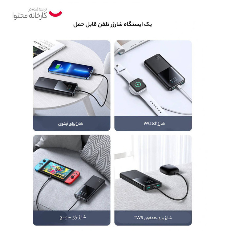 مشخصات فنی: دارای کیسه پارچه ای برای نگهداری پاوربانک / کابل شارژ همراه USB به تایپ سی / شارژ با توان خروجی 30 وات / دارای 2 عدد کابل متصل به بدنه لایتنینگ و تایپ سی