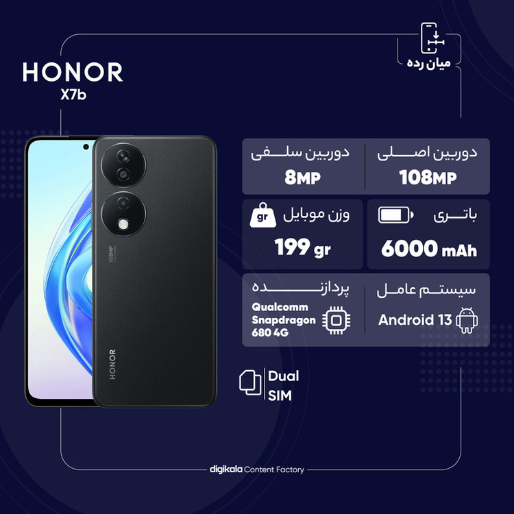 افراد بسیاری به دنبال یک گوشی روزمره میگردند که در عین داشتن ویژگیهای استاندارد، قیمت بالایی هم نداشته باشد. گوشی موبایل آنر مدل X7b یکی از مدلهایی است که برای این کاربرد طراحی شده است و کیفیت خوبی هم دارد. این گوشی طراحی شیک و سادهای دارد که با انواع سلیقهها به راحتی هماهنگ میشود و وزن و ابعاد استانداردی دارد. نمایشگر این گوشی از نوع IPS است و با تراکم پیکسلی 389 پیکسل بر اینچ، کیفیت متناسبی را با توجه به قیمت ایجاد کرده است. نرخ نوسازی صفحه 90 هرتز کمک میکند عملکرد روان و بدون مشکلی وجود داشته باشد و حالت پرش بین صفحات را تجربه نکنید. در بخش پردازنده، تراشه Snapdragon 680 و رم هشت گیگابایتی کمک میکنند این گوشی برای کارهای روزمره انتخاب بسیار خوبی باشد و بتوانید به راحتی روی آن حساب باز کنید. باتری 6000 میلیآمپرساعتی هم مهمةرین قطه قوت این گوشی است که آن را به یک انتخاب کاربردی تبدیل کرده است.