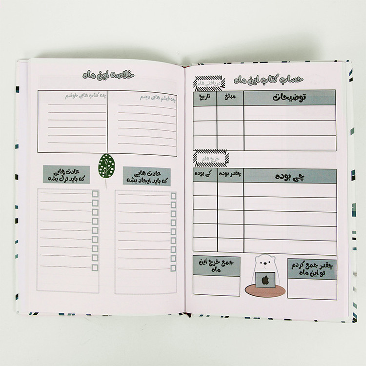 دفتر برنامه ریزی فصلی | دارای جدول مخصوص حساب کتاب | دارای خلاصه ی ماه | دارای جدول کلی شروع ماه | مناسب برای پیگیری اهداف