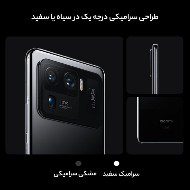 شیائومی Mi 11 Ultra یکی از قدرتمندترین گوشیهای هوشمند این شرکت است که در جایگاه یک گوشی پرچمدار، توانایی ارائه عملکرد بسیار خوبی را دارد. این گوشی به صفحهنمایش با ابعاد 6.81 اینچ و رزولوشن 1440×3200 پیکسل از نوع AMOLED مجهز شده است. صفحهنمایش بسیار باکیفیت که توانایی نمایش 515 پیکسل در هر اینچ و نرخ بروزرسانی 120 هرتز را دارد. روشنایی 1700 نیت (شمع در متر مربع) هم از دیگر قابلیتهای جذاب این صفحهنمایش است. در قسمت پشتی این گوشی شاهد قرار گیری سه سنسور دوربین هستیم که توانایی ارائه عملکرد فوق العادهای را دارند. یک سنسور دوربین اصلی با رزولوشن 50 مگاپیکسل از نوع عریض در کنار سنسور 48 مگاپیکسل از نوع پریسکوپ تلهفوتو و سنسور 48 مگاپیکسل از نوع فوق عریض (ultrawide) با زاویه دید 128 درجه، سنسورهای دروبین سهگانه شیائومی Mi 11 Ultra را تشکیل میدهند. برای دوربین سلفی هم سنسور با رزولوشن 20 مگاپیکسل در نظر گرفته شده است. حضور پردازنده قدرتمند اسنپدراگون 888 5G شرکت کوالکام سبب شده تا شیائومی Mi 11 Ultra بهراحتی از پس سنگینترین بازیهای ممکن روز دنیا بربیاید و از طرفی امکان پشتیبانی از شبکههای اینترنتی نسل پنجم یا همان 5G را هم داشته باشد. باتری با میزان ظرفیت 5000 میلیآمپرساعت هم از دیگر مشخصات در نظر گرفته شده است. پشتیبانی از فناوری شارژ سریع 67 واتی سبب شده هم تا شارژ صفر تا صد درصدی باتری در مدت زمان بسیار کوتاه 36 دقیقه انجام شود.