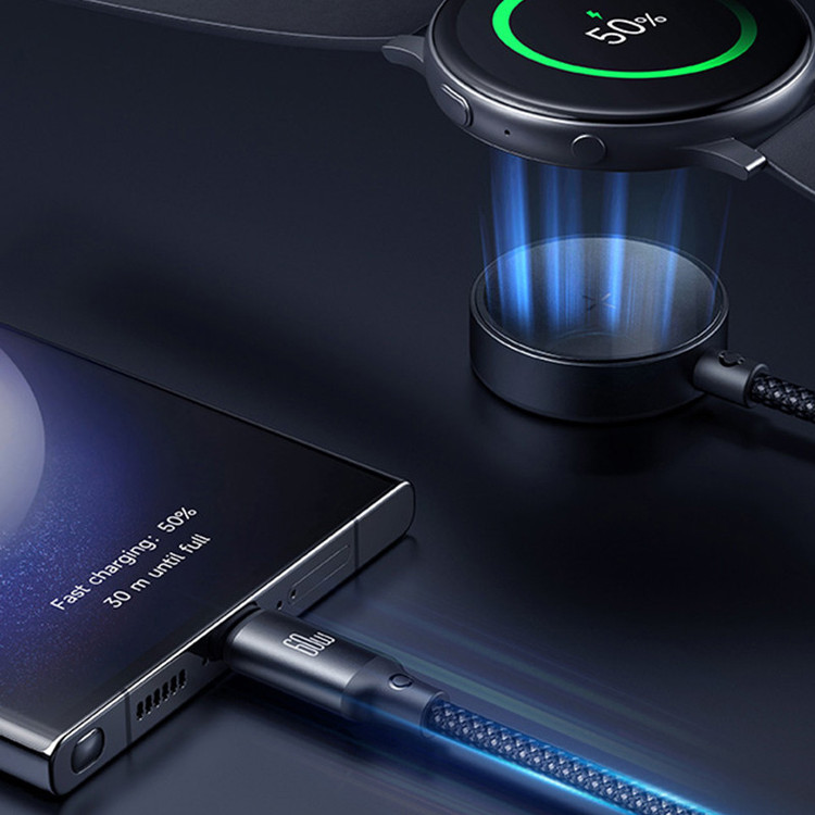مشخصات: طول کابل : 1.2 متر | سرعت انتقال دیتا با کابل USB-C برابر با 480Mbps | امکان شارژ همزمان ساعت سامسونگ و موبایل