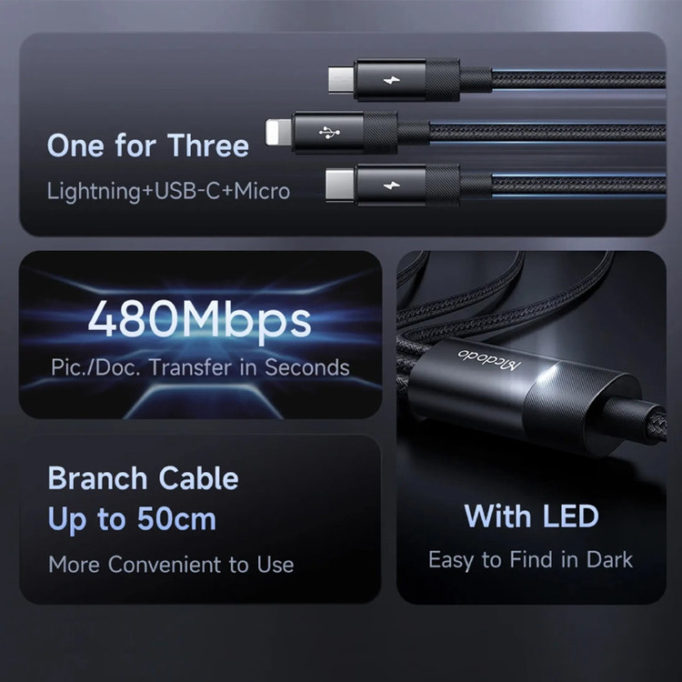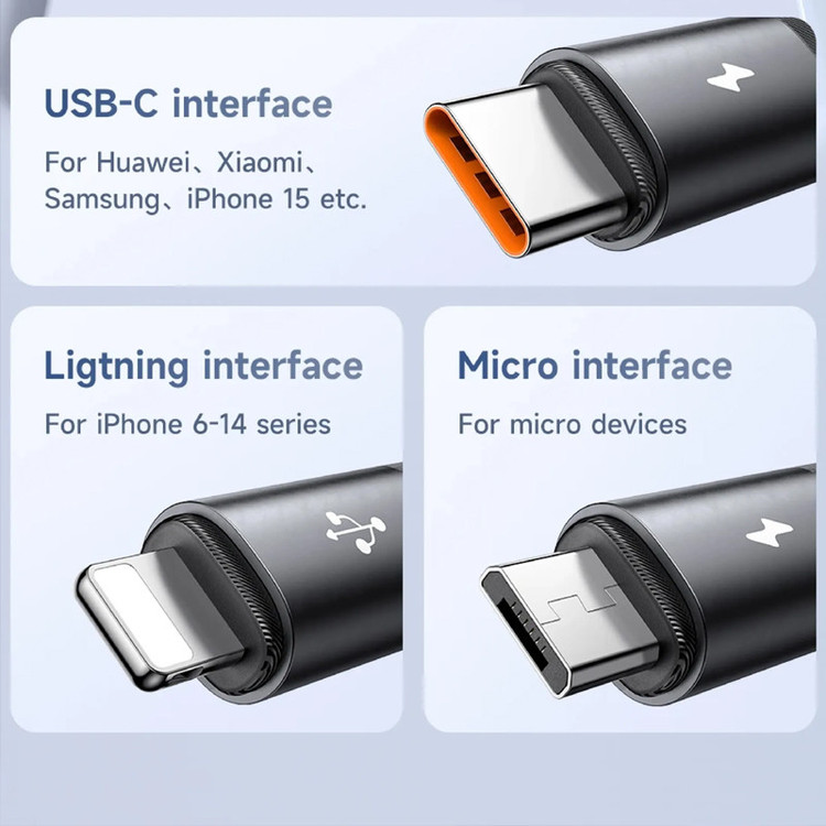 سازگار با: هر دستگاه دارای سه پورت MicoUSB | USB-C | لایتنینگ