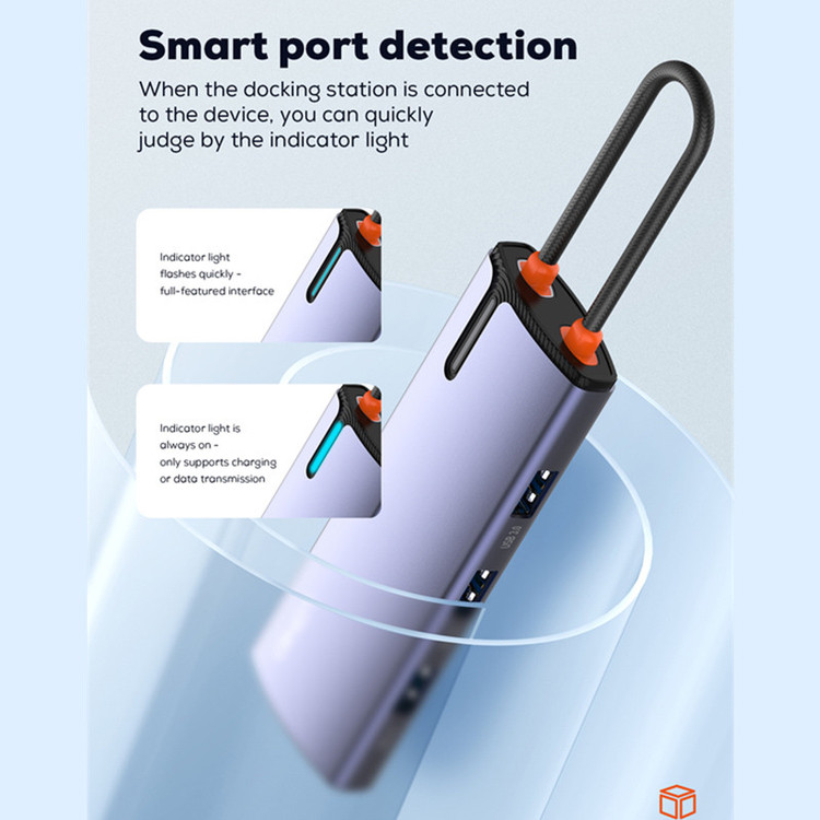 بر روی بدنه نیز یک چراغ LED قرار گرفته که درهنگام استفاده از هاب روشن خواهد شد و در صورتی که چراغ LED روی دستگاه به صورت ممتد روشن باشد، تنها امکان شارژ و انتقال اطلاعات را خواهید داشت و در صورتی که چراغ چشمک بزند، تمام امکانات هاب قابل استفاده خواهد بود.