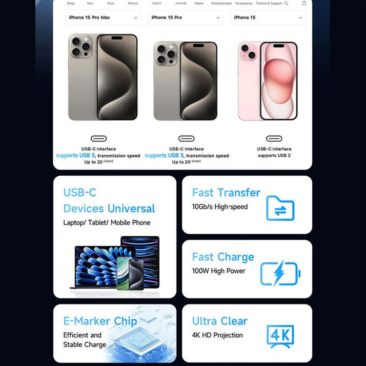 طول کابل: 1.2 متر | توان خروجی: 100W | پشتیبانی از قابلیت PD3.0 | دارای روکش کنفی و کانکتورهای فلزی | انتقال تصویر با کیفیت 4K / 60Hz