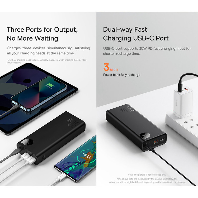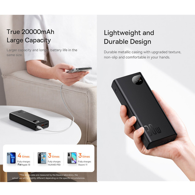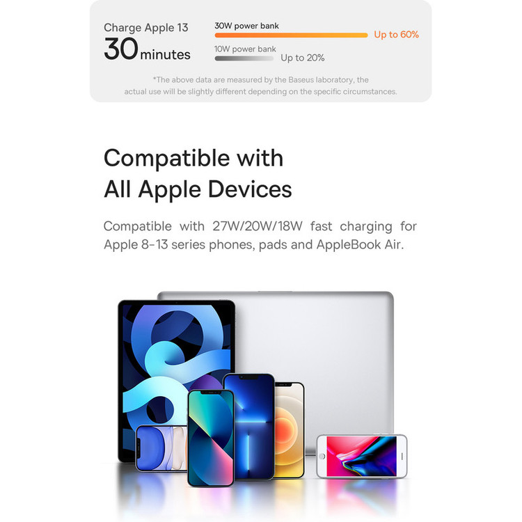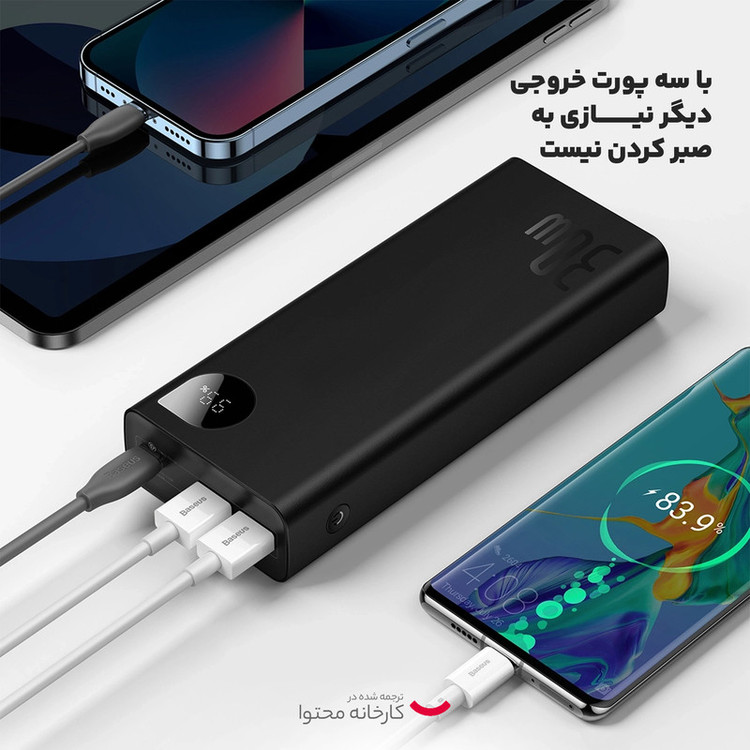 قابلیت شارژ شدن سریع پاوربانک با توان 30 وات دارای کابل تایپ سی 60 وات به طول 50 سانتی متر