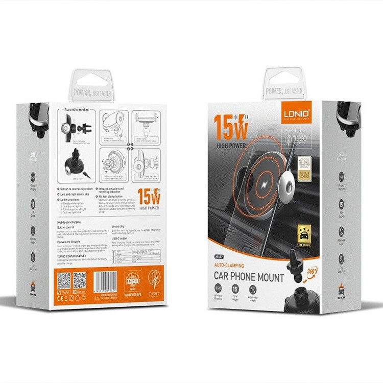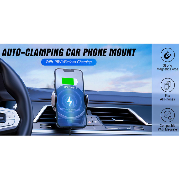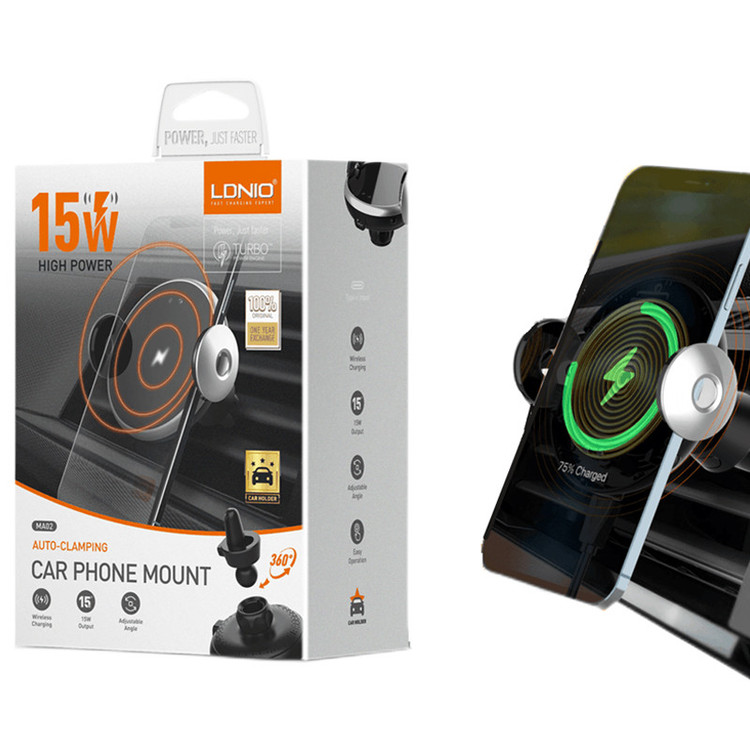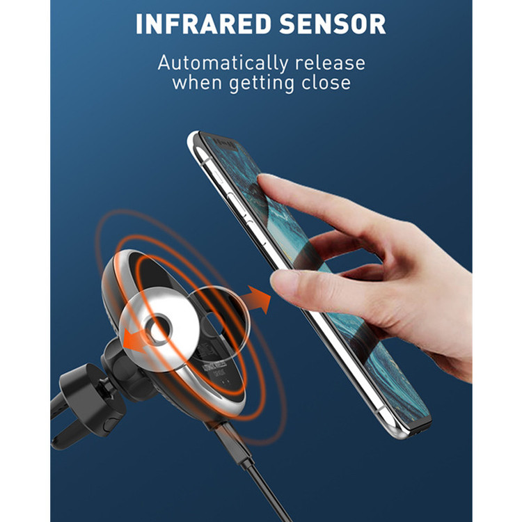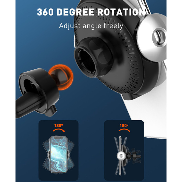 امکان استفاده روی دریچه کولر خودرو | شارژر وایرلس با توان حداکثر 15 وات | دارای مکانیزم خودکار باز و بسته شدن | قابلیت چرخش 360 درجه