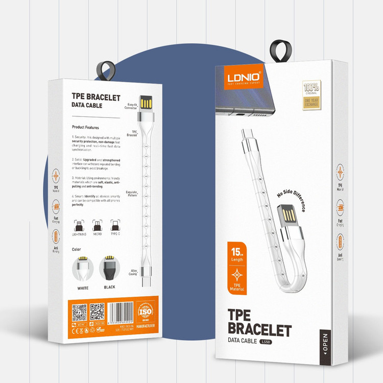 طول کابل: 15 سانتی متر نوع کابل: USB به Type-C طراحی شده به صورت دستبند دارای روکش TPE و انعطاف پذیر