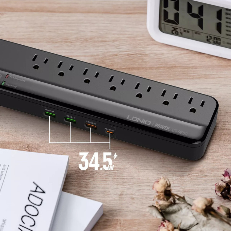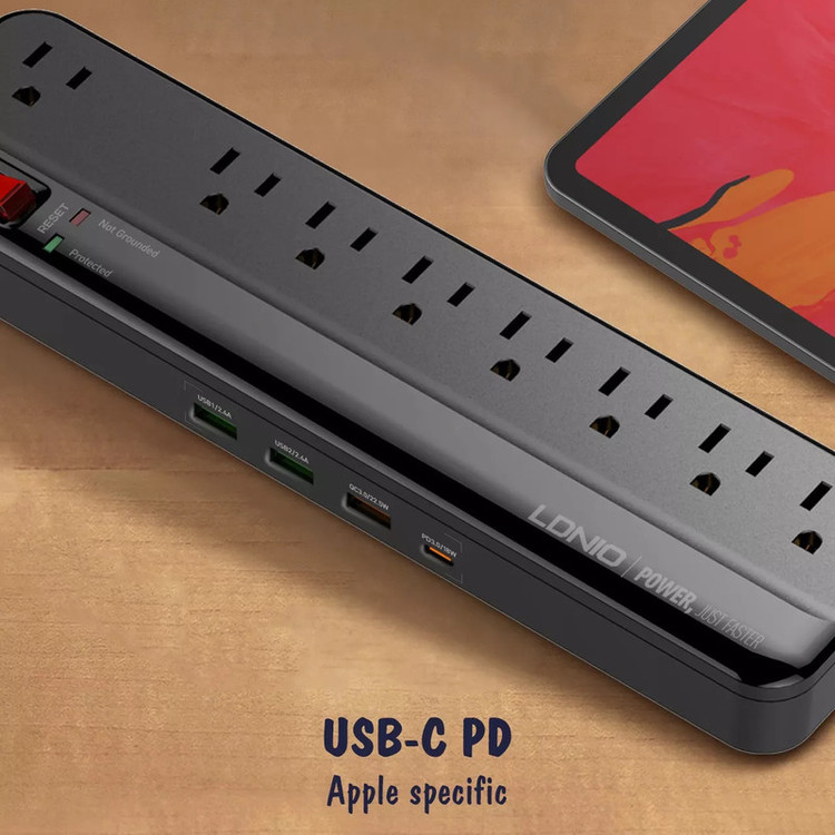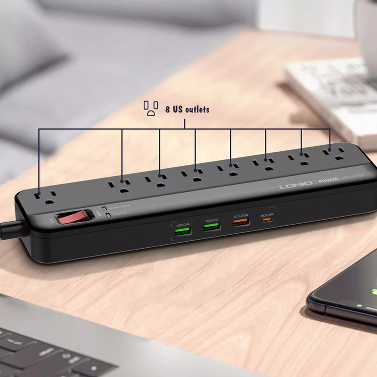 تعداد درگاه خروجی: 8 عدد پریز، 3 پورت USB و 1 پورت USB-C