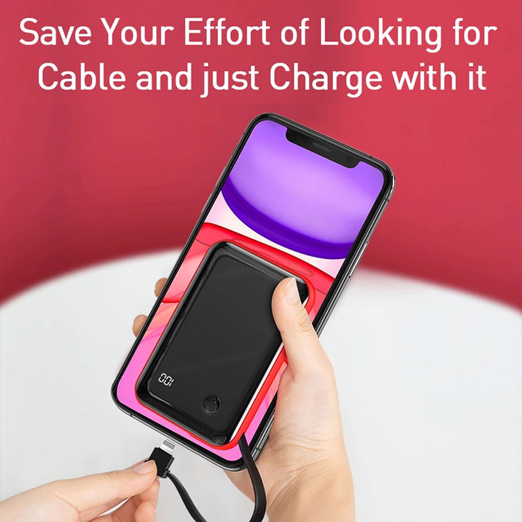 بدنه پاوربانک Mini S از جنس پلاستیک ABS و فیبر کربن است. این مدل دارای کابل چسبیده Lightning است که شما را برای شارژ کردن گوشی های آیفون از همراه داشتن کابل بی نیاز خواهد کرد.