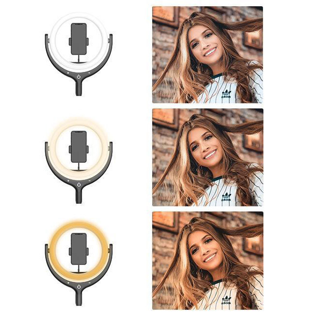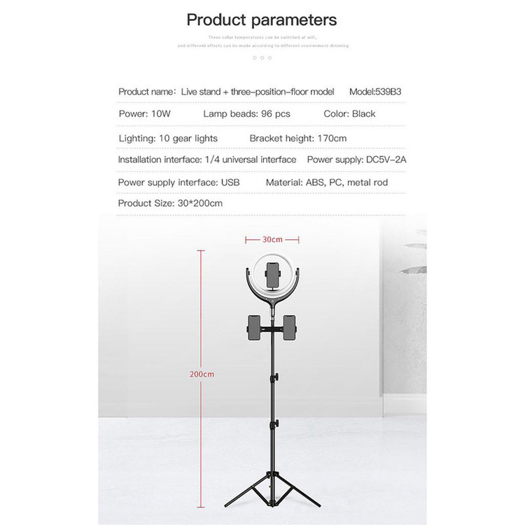 به همراه پایه دارای 3 دمای رنگی قابلیت کم و زیاد کردن شدت نور ساخته شده از ABS/PC/Metal rod ورودی USB چرخش 315 درجه دارای 3 جای مختلف تلفن همراه