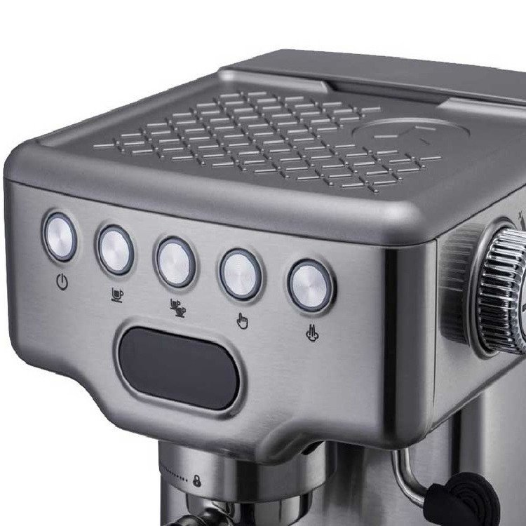 کلید تنظیم عملکرد و انتخاب قهوه تک و دوبل به صورت لمسی دستگاه دارای پایه های ضد لغزش سینی چکه گیر استیل با قابلیت جداشدن و شستشو