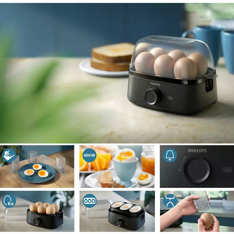 توان مصرفی 400 وات، قابلیت آماده کردن 6 عدد تخم مرغ در هر مرتبه، قابلیت پخت سه عدد تخم مرغ بصورت آب پز (نیمرو)، قابلیت پخت تخم مرغ به سه روش: عسلی، متوسط یا پخت کامل (سفت)، طراحی و مهندسی در کشور هلند مونتاژ نهایی در کشور چین