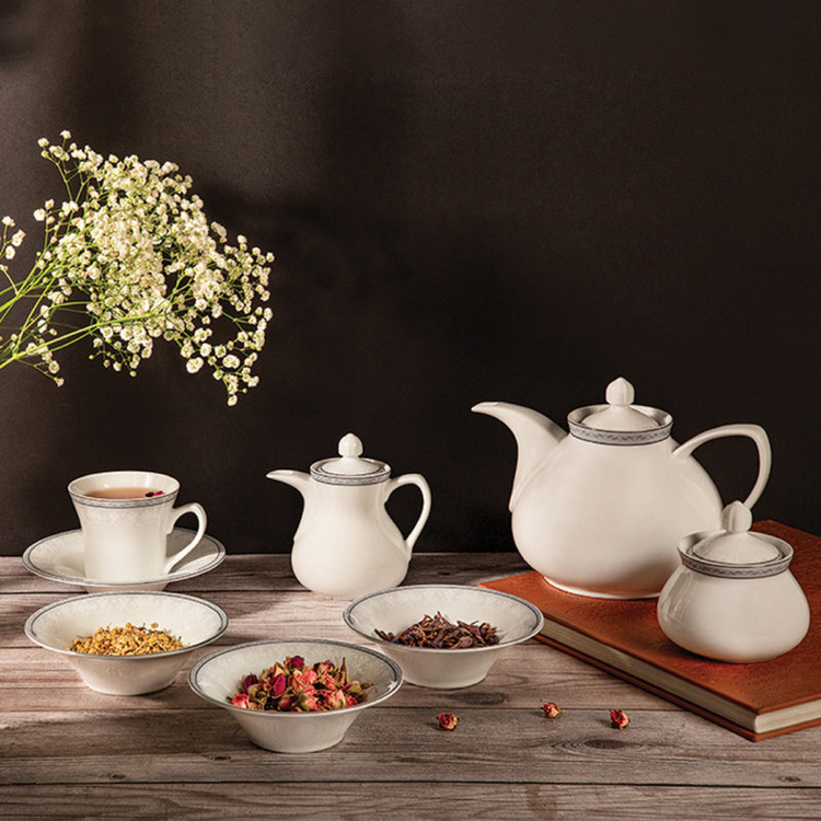 - شش عدد پیاله با قطر 18 سانتیمتر - سه عدد پیاله با قطر 21 سانتیمتر - دوازده عدد پیاله با قطر 14 سانتیمتر - ظروف شکر با درپوش