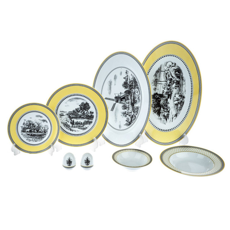 سرویس غذاخوری 28 پارچه چینی زرین ایران سری ایتالیا اف مدل Village 2 درجه عالی