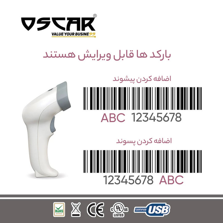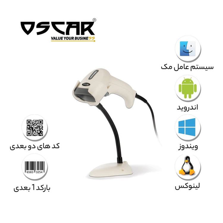 قابلیت خواندن اتوماتیک بارکد از روی پایه دارای حسگر تایید اسکن از طریق ویبره قابليت خواندن باركد از روي صفحه موبايل و كامپيوتر