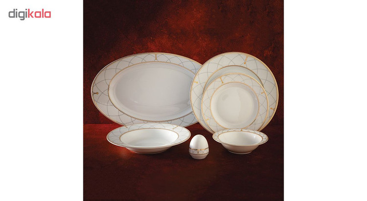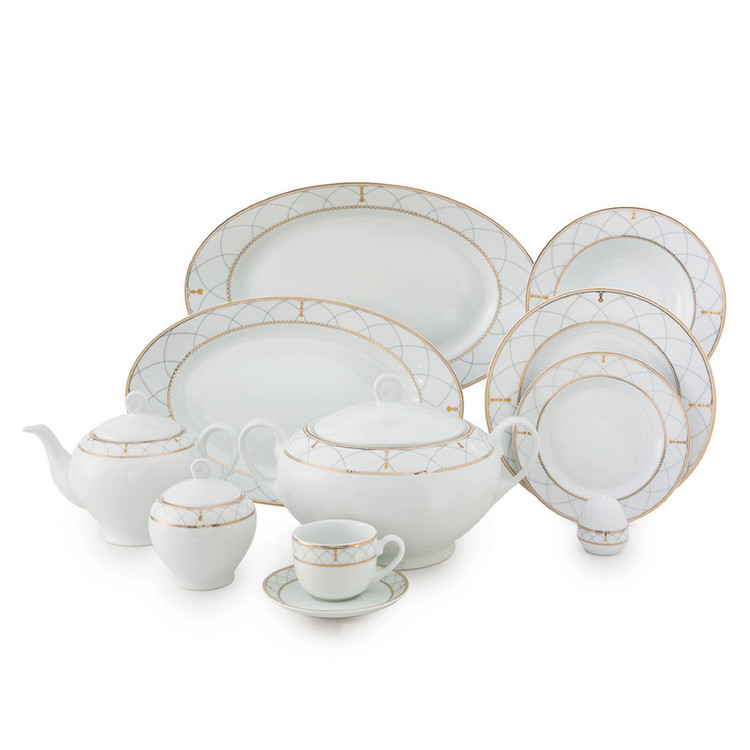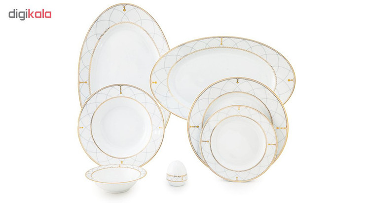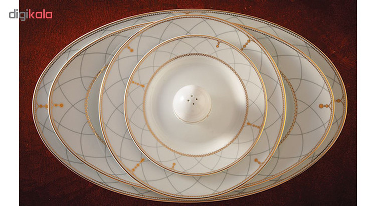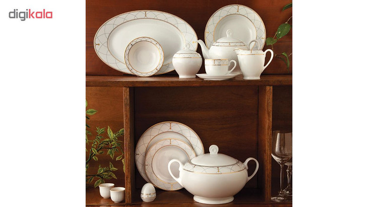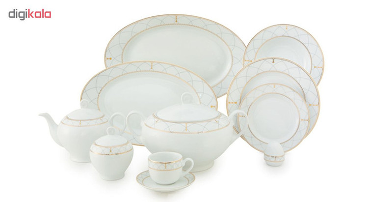 اقلام سرویس: سوپخوری , ظرف سالاد , دیس , بشقاب غذاخوری , بشقاب خورشخوری , پیشدستی , قوری چایخوری , فنجان , نعلبکی , قندان , شکرریز , نمکپاش و فلفلپاش , پیاله