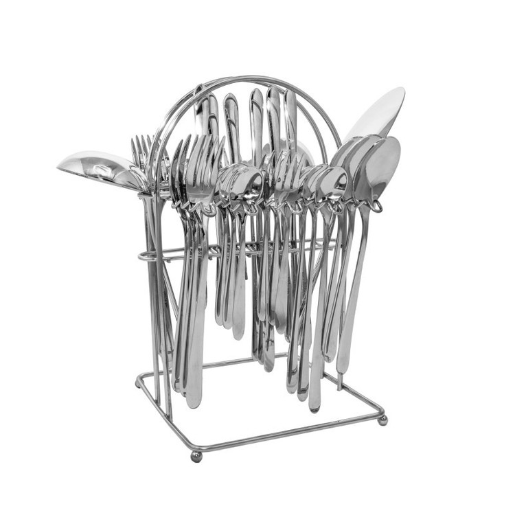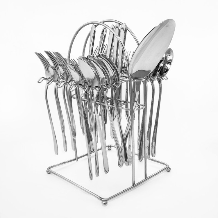 39 پارچه کاربردی شامل 6 عدد قاشق غذاخوری+6 عدد چنگال غذاخوری+ 6 عدد کارد میوه خوری+6 عدد چنگال میوه خوری+ 6 عدد قاشق شربت خوری+ 6 عدد قاشق چای خوری+1 عدد کفگیر+1 عدد ملاقه و 1 عدد پایه نگهدارنده.