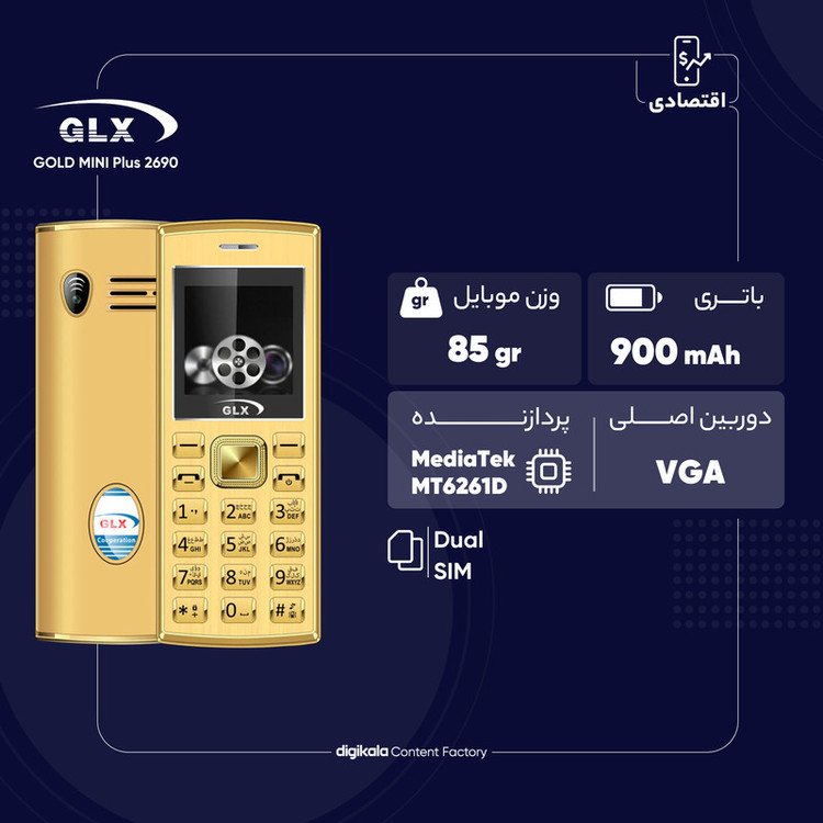 اگر به دنبال خرید گوشی کلاسیک هستید که در استفاده روزمره عملکرد قابل قبولی داشته باشد، گوشیهای برند جی ال ایکس میتوانند گزینه خرید بسیار خوبی برای شما باشند. مدل 2690 GOLDMINI Plus هم یکی از گوشیهای کلاسیک خوش ساخت و البته مقرون بهصرفه این شرکت است. در نمای روبهرویی صفحهنمایش با ابعاد 1.54 اینچ از نوع TFT را شاهد هستیم که برای نمایش اعلانها و خوانایی آیکونها، عملکرد قابل قبولی دارد. در قسمت پشتی این گوشی هم یک سنسور دوربین با رزولوشن VGA در نظر گرفته شده که برای ثبت تصاویر معمولی در نور روز مورد استفاده قرار میگیرد. ابعاد بسیار مناسب و البته وزن بسیار سبک 85 گرمی این گوشی، در استفاده طولانی مدت هیچ خستگی برای دست بههمراه نخواهد داشت. ابعاد مناسب دکمههای صفحهکلید هم، امکان استفاده راحت و سریع را برای شما فراهم کرده است. حضور باتری با میزان ظرفیت 900 میلیآمپرساعت هم سبب شده تا به ازای هر بار شارژ صد درصدی، شاهد طول عمر مفید (زمان آماده بهکار) طولانی و بسیار خوبی باشید. در مجموع اگر به دنبال گوشی کلاسیکی هستید که با رنگبندی متنوع و ظاهر کاربر پسند، در فعالیتهای روزمره معمولی عملکرد خوبی داشته باشد، جی ال ایکس 2690 GOLDMINI Plus میتواند یکی از گزینههای مناسب برای شما باشد.